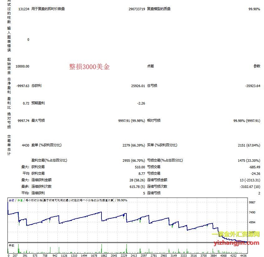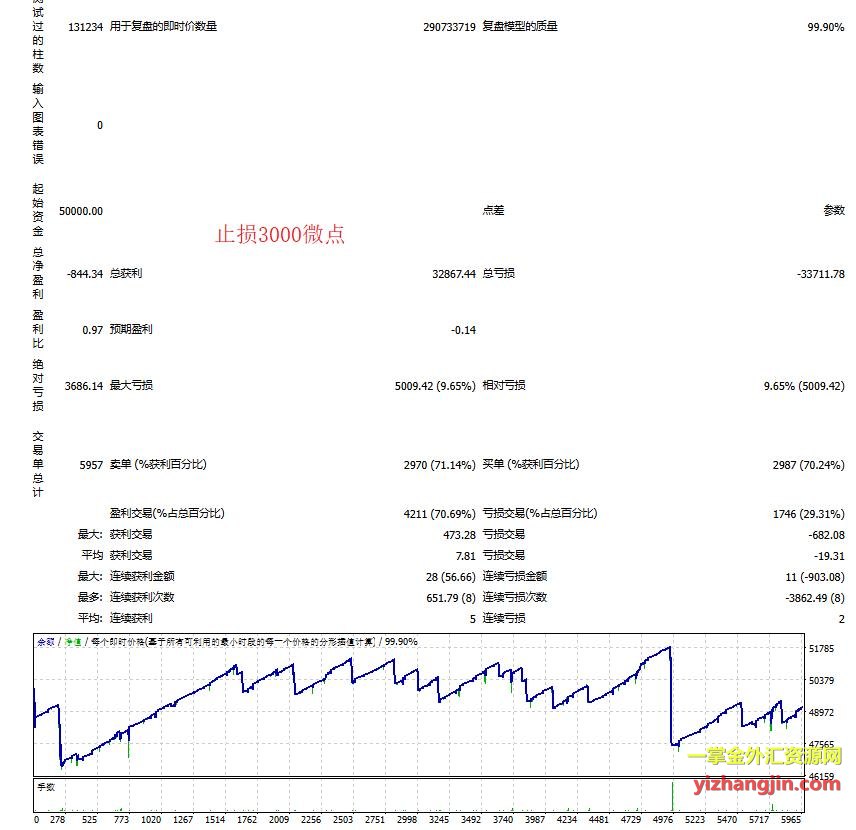 客户让我用以下三个条件做报告:默认参数下的马丁策略表现,加入3000微点止损,整体账户设置3000美元止损。客户对回测条件的明确与细致,说明还是比较专业。同一EA在不同回测条件和风控方式下可能呈现出截然不同的表现,因此,通过细分测试条件,他能够更精准地评估策略在真实交易中的适用性与风险水平。