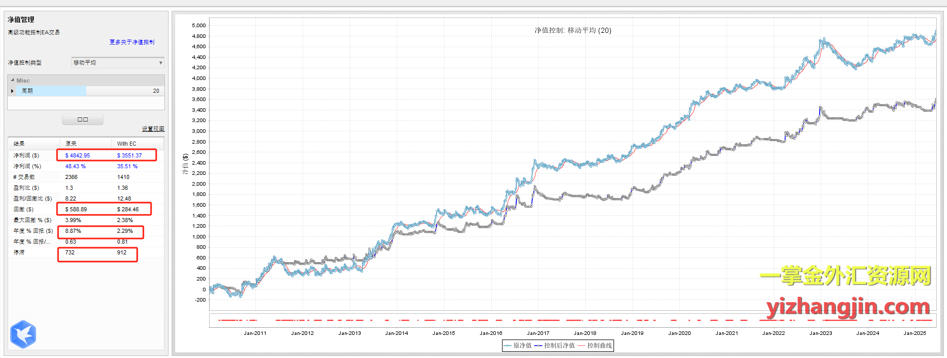 净值控制的基本原理:净值曲线是策略在历史回测中账户资金变化的直观体现。通过观察净值曲线的波动,我们可以识别策略的表现趋势——是持续盈利、阶段性回撤,还是震荡横盘。当净值高于某条移动平均线时,继续交易;当净值低于某条移动平均线时,停止交易或减少仓位;这些规则本质上是一种基于表现反馈的交易管理机制,它不改变策略的入场逻辑,而是通过“暂停”或“调整”交易行为来优化整体收益表现。