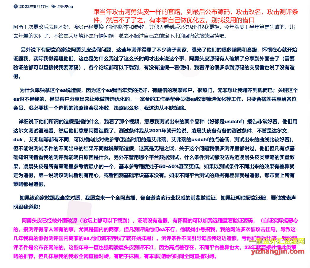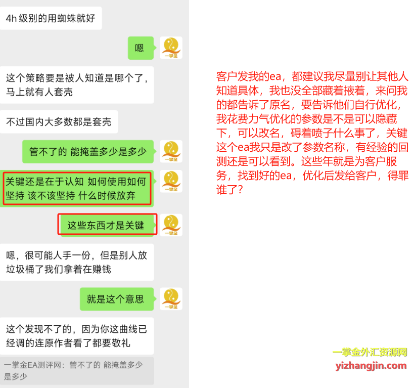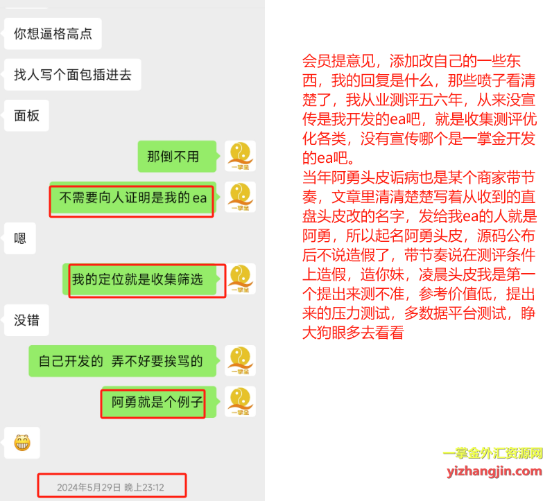 我既不是程序员,也不是ea作者,我只是提供测评与优化服务的人。如果你能找到我在聊天中、文章中、公众号中,哪怕一次“吹牛”说自己原创了某个EA,我都愿意公开道歉。否则,请停止对我进行无端指责。