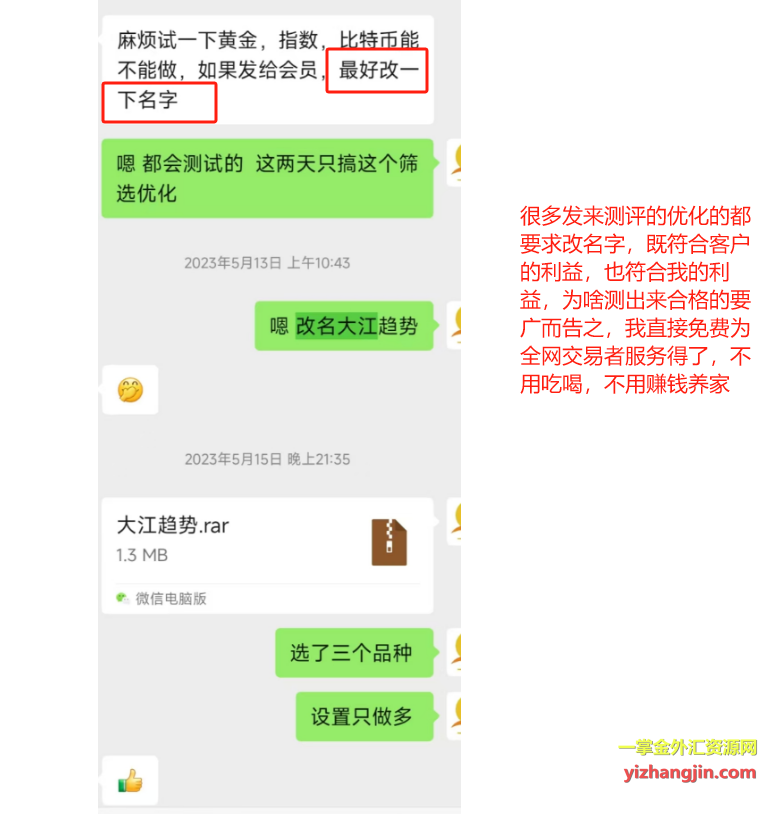 有网友质疑我“改名是为了掩盖抄袭”,我对此表示不解。改名本身并不违法,也不是不道德的行为。事实上,很多客户在委托我测评EA时,都会要求我对其原始名称进行修改,这是出于保护客户隐私与市场利益的双重考虑,包括这次发zigzag这个客户也是让我修改剔除本来的各种信息。