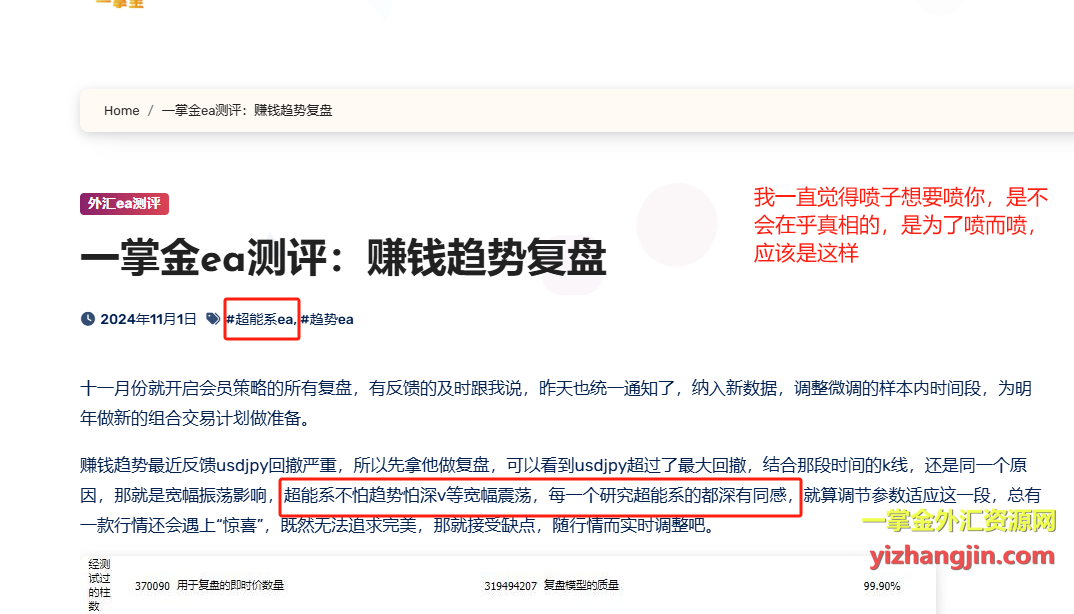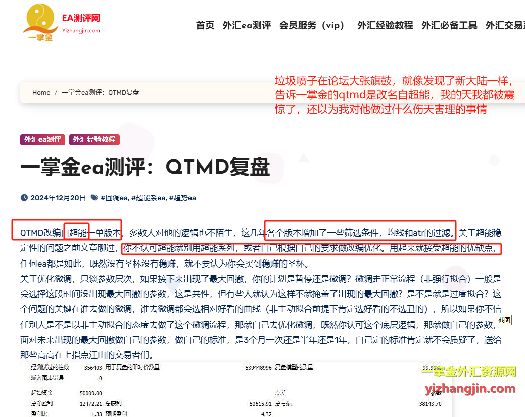 我从未在任何场合宣称“蜘蛛突破”是我原创开发的EA。我网站和公众号的文章一直明确写着:我从事的是外汇EA的收集、筛选、测试、点评、优化与组合,而非开发原创EA。