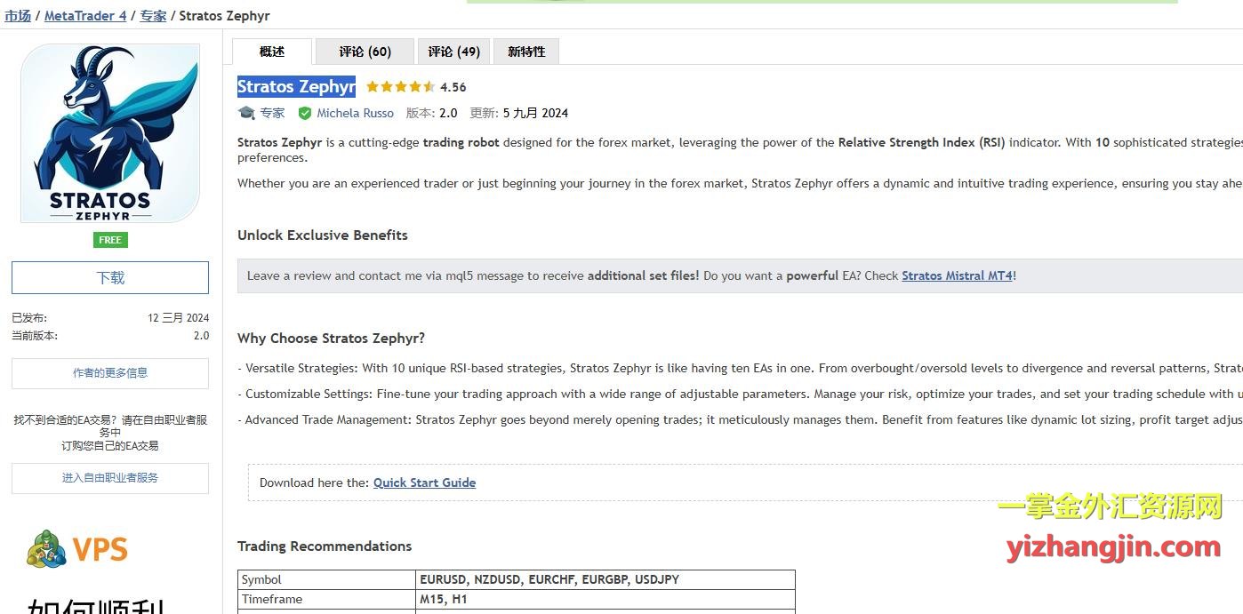 Stratos Zephyr是mql5一款免费的ea策略,算是免费的前几名热门策略,依照客户要求做下测评。默认参数是不带止损的,马丁加仓模式,虽然限制了总单量,但属于硬抗,没有动态出场模式,所以一直被套。然后做了加整损200-400的报告,有几个品种能做到震荡上行,总体还是过于坎坷,曲线曲折,我就不做推荐了。你可以把它当成一款半成品工具当研究案例,感兴趣的可以自行下载研究。