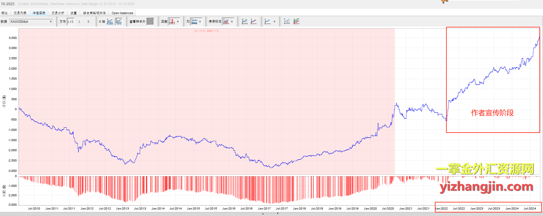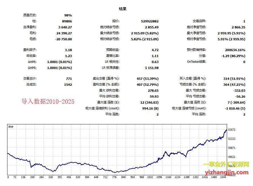 为了验证这一猜想,我将TDS的高质量数据导入MT5,进行了完整的2010-2025年回测。结果(请参考第三张测试曲线图)清晰揭示了该EA在整个测试周期内的真实资金走势,所谓的“圣杯”幻象瞬间破灭。