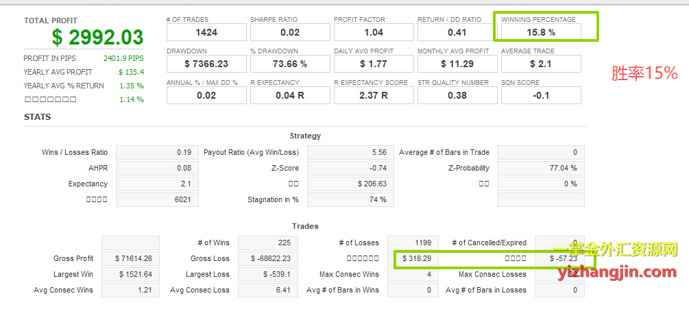 具体来看,客户优化后的策略在交易频率上明显低于默认参数,交易单量减少了约80%。虽然盈亏比显著提升至6:1,但胜率也下降至仅15%左右。此外,在回测中还出现了多次持续3至6个月的连续止损阶段,导致资金曲线出现连续回撤,说明策略在某些市场环境下适应性较差,稳定性和持续性存在一定问题。
