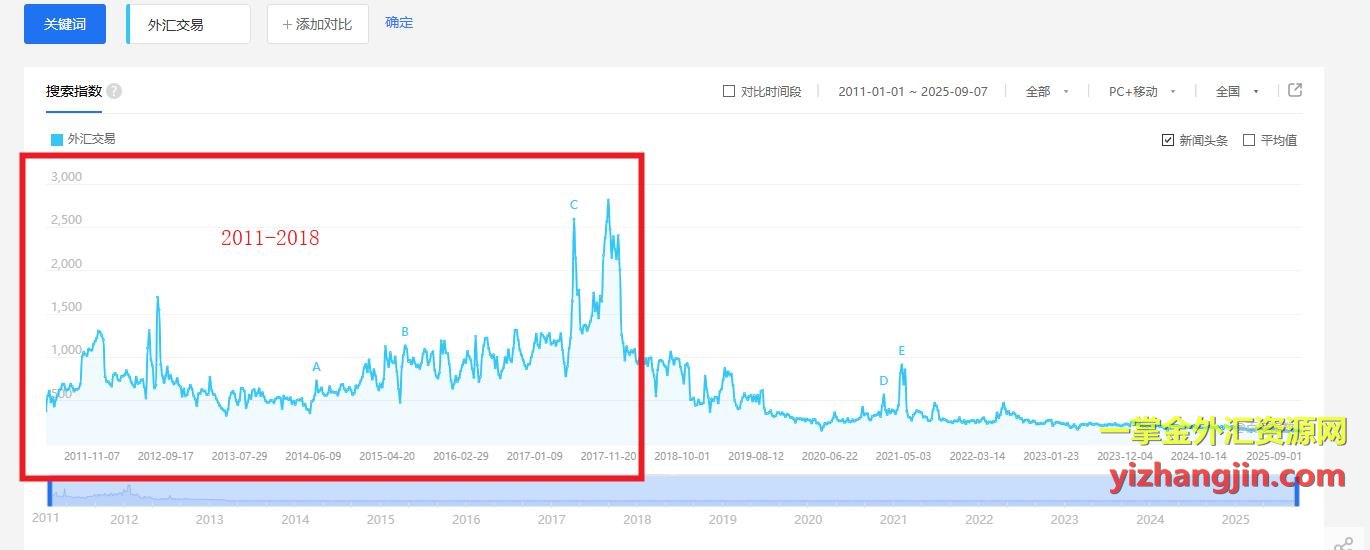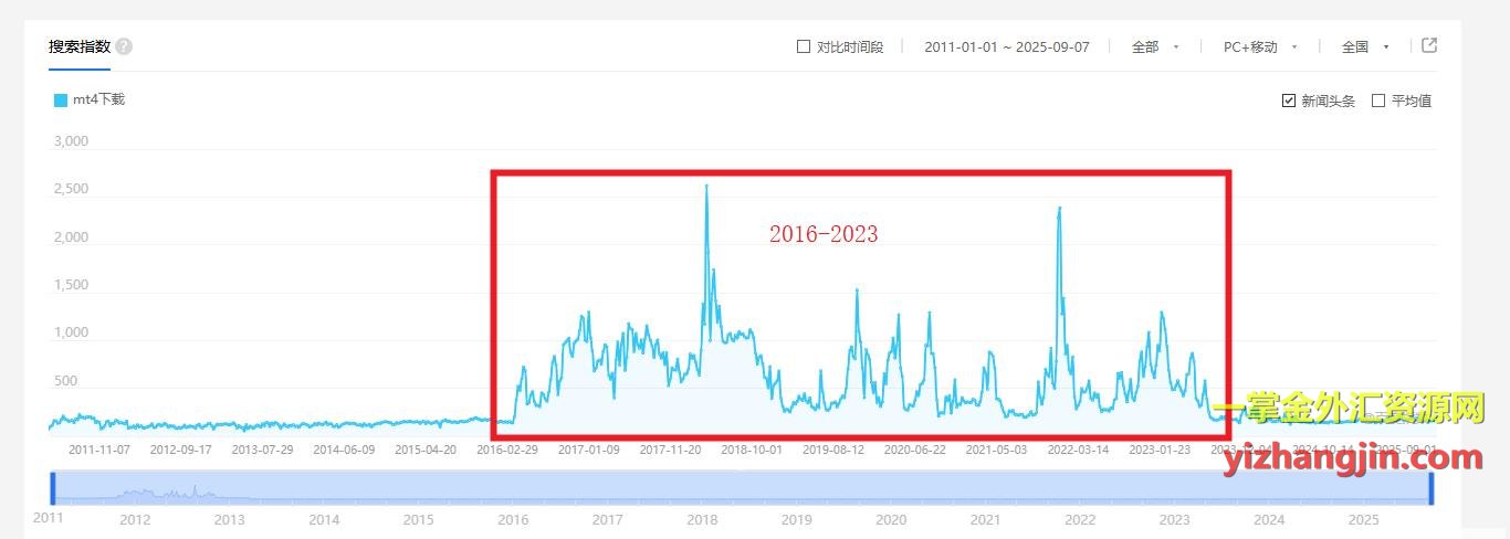 再来看外汇交易,“MT4下载”和“外汇交易”关键词的百度指数这几年持续走低,说明市场热度在不断下降。过去那种qq 微信群里热火朝天讨论交易策略的场景已经不复存在,很多平台和群聊现在只剩下广告,甚至广告都越来越少。我身边一些原本做外汇的朋友也逐渐转战到了股市,多数是套了好多年的,觉得机会来了。