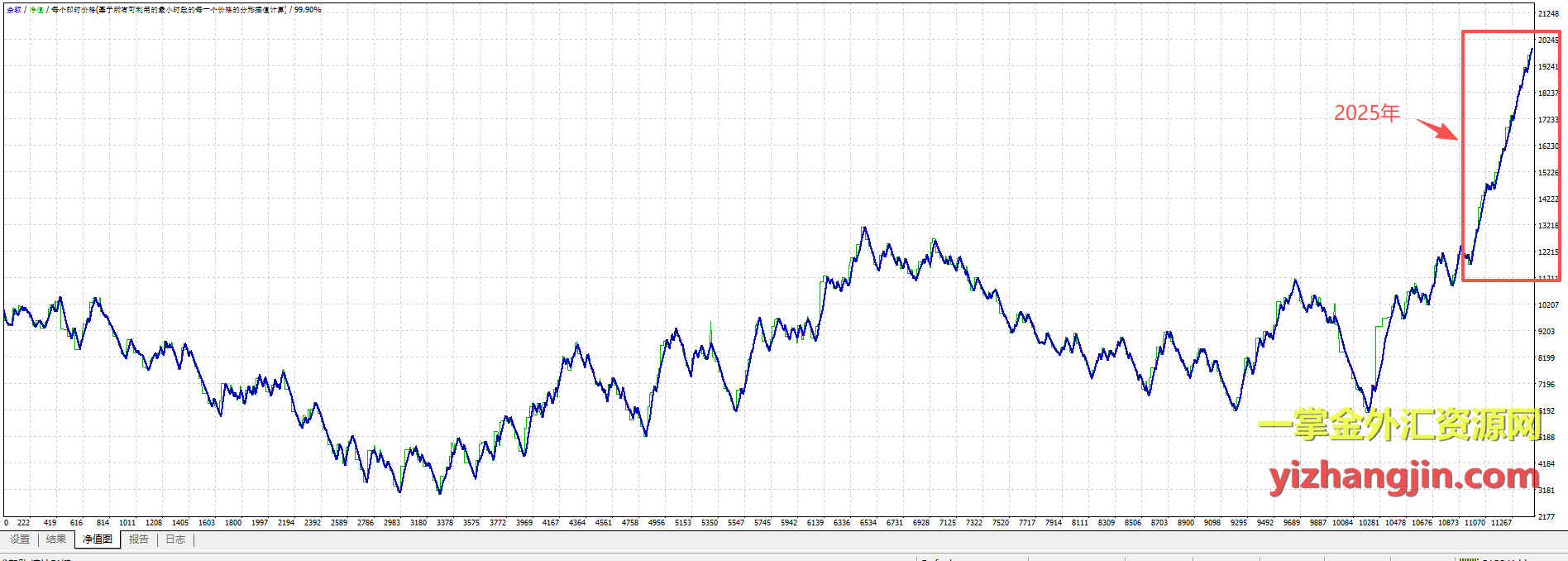 黄金形态EA是一款客户提供的突破型多单交易策略,采用挂单方式进行交易,带有止盈止损。该策略同一关键位置随着时间推移不断挂出多个订单,订单数量在某些点位可能高达几十个。这种策略在趋势行情发动时表现尤为出色,收益爆发力强;但在行情震荡或方向不明时,容易出现快速回撤。