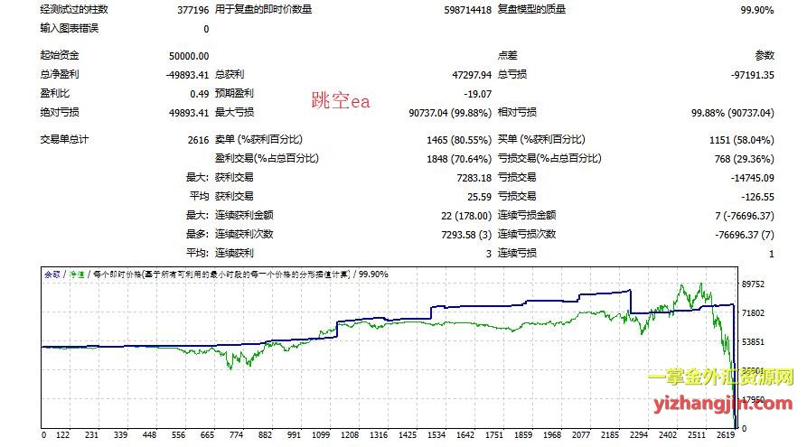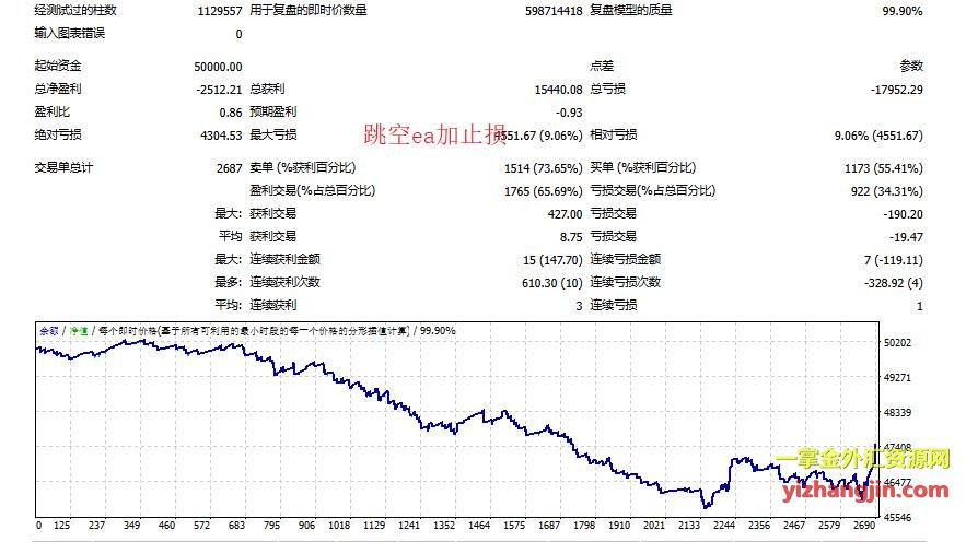 跳空ea为专门针对跳空行情设计的交易系统,其逻辑基于市场出现跳空缺口后的价格回归行为,属于典型的均值回归策略,依赖市场对缺口的自然修复机制。然而,该策略默认未设置止损,导致在缺口未能回补的行情中可能产生大幅浮亏甚至爆仓风险。即便手动加入止损规则,测试报告仍显示资金曲线持续下行。此类策略可能在多次交易中连续获利,但一旦出现不利行情,极易造成全部收益回吐甚至重大亏损,需警惕此类缺乏风险控制的交易系统。