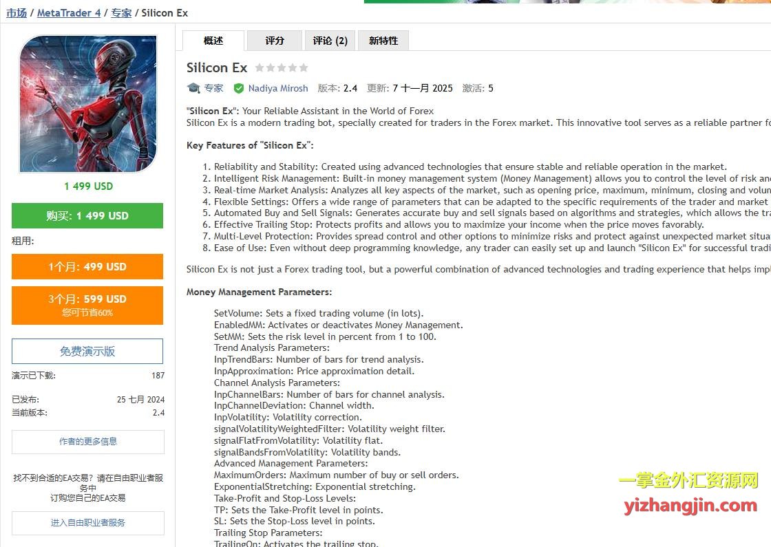 客户传来一款名为Silicon Ex的MQL5的EA,要求验证其真实性。该EA售价高达1499美元,文件体积超过1MB,再加上作者所展示的所谓“圣杯级”回测曲线,这些因素都值得怀疑作者作弊。通常情况下,即便策略逻辑极为复杂,EA文件的大小一般也在几百KB之内。因此,如此异常的体积很可能意味着其中嵌入了大量与策略无关的代码,极有可能是用于操纵回测结果的隐藏逻辑,这也是判断其可能存在造假的首要线索。