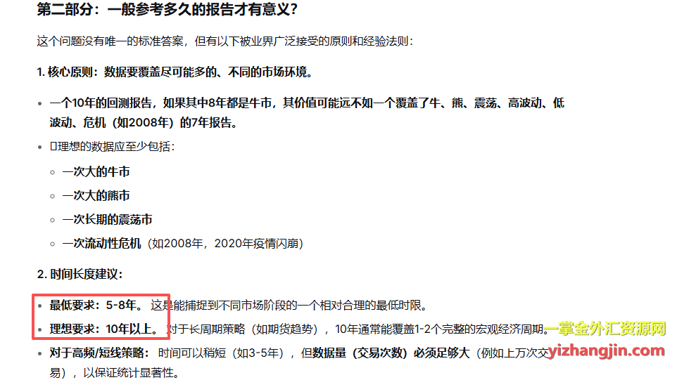 当然,这些理论认知与实际操作之间存在着不可避免的矛盾。即使找到历史回测表现合格的EA(非造假),也未必能保证未来稳定盈利,还需要警惕过度拟合的风险,以及市场行情结构的变化。因此,历史数据只能作为概率参考,在这个充满挑战的行业中寻找相对可靠的依据。精通优化的交易者完全可以在不造假的情况下,通过正常手段优化出漂亮的长期回测报告,这就使得我们看到的可能只是“虚假的繁荣”。正因如此,这个行业格外艰难,即使研究得再深入,也依然面临重重困难。偶尔也会有交易者问道:是否存在历史表现不佳,但从某个时间点开始转变策略后持续盈利的EA?答案是肯定的,但这种情况属于小概率事件——您是否要赌这个小概率,还是相信大数据显示的概率?在实践中,我接触到少数交易者仅参考最近1-3年的回测数据,他们通常拥有独到的见解、精准的优化频率和对市场变化的敏锐感知。更重要的是,他们的EA都是自主开发完善的,对每笔交易的开仓条件都有着极其精确的掌控能力——但这需要绝大多数交易者所不具备的实力和精力投入。