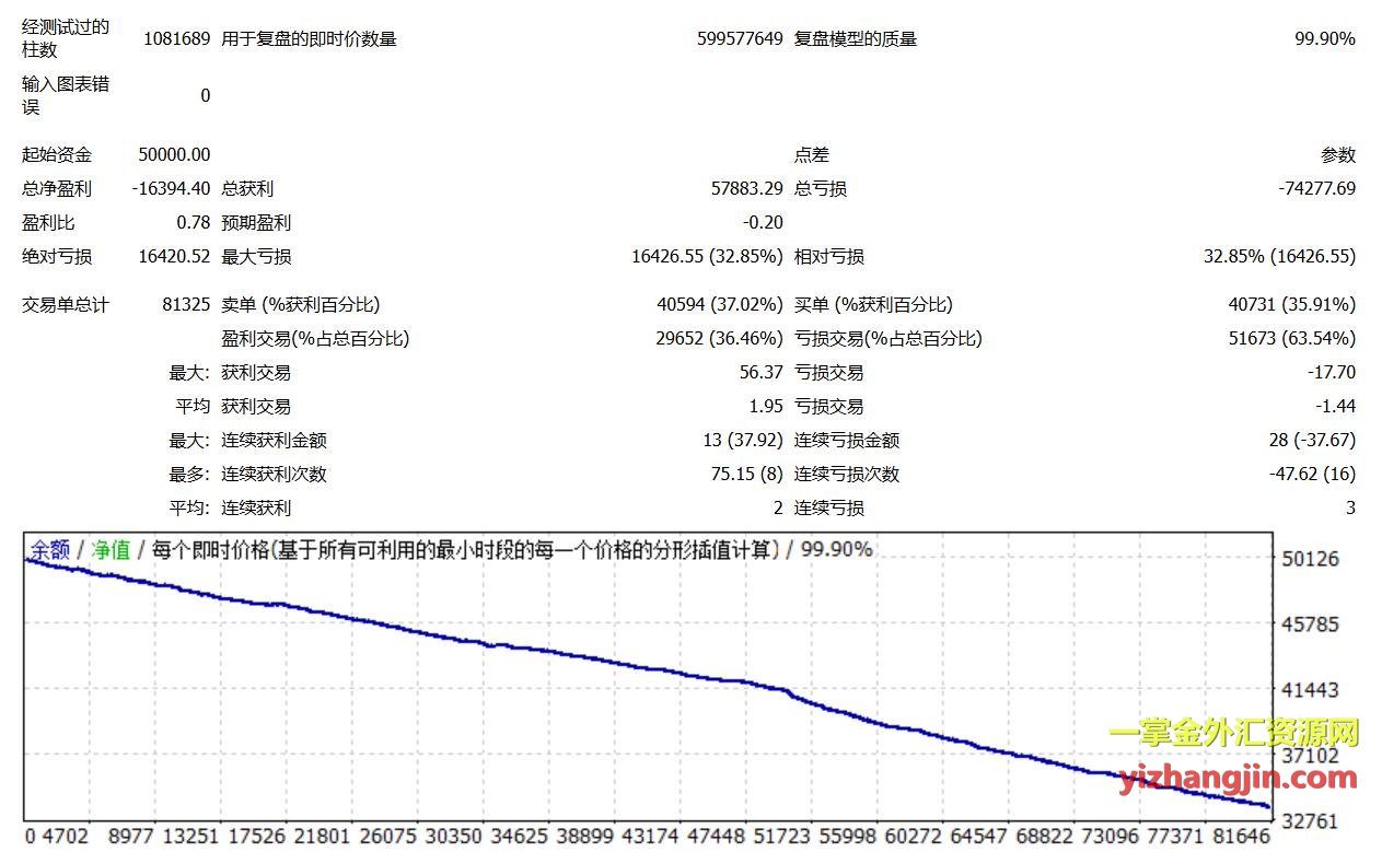 疯狂黄金是一款专注于黄金的高频交易策略,交易单量极大,但平均止盈和止损空间较小,低于大家认可的最小空间范围。在正常的回测条件下,由于综合交易成本会覆盖其微薄的盈利空间,资金曲线往往呈现持续下行。许多此类展示中看似优秀的观摩账户或回测报告,往往是通过模拟盘、假实盘和宽松回测实现的。对于此类策略,建议新人务必自行计算平均止盈止损空间,对比实际交易成本,即可判断其长期可行性。即便报告条件宽松,通过计算也能发现潜在问题。