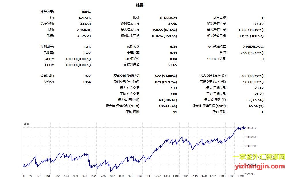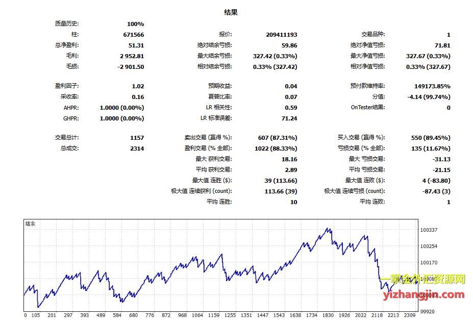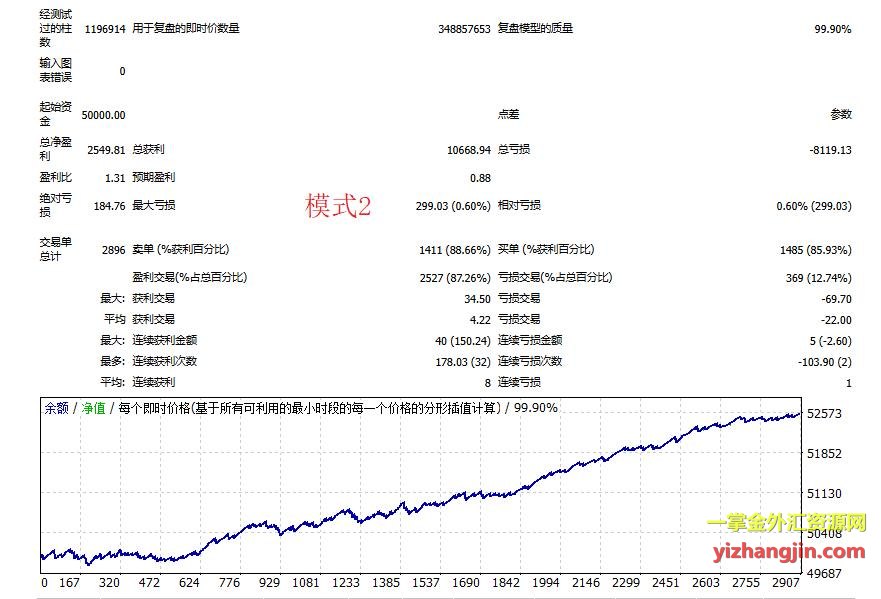 测试结果如图所示,其中第一模式默认止损设置过大,不建议启用;第二模式止损相对合理,建议可启用。用户也可根据自身风险偏好,选择模式三自行调整止损参数。这个ea强损一次大概恢复期是3个月,行情不适应年份连续止损停滞期较长,盈亏比小于1:5,所以能接受这个特点的可以用,不符合自己要求的不要强行使用。
