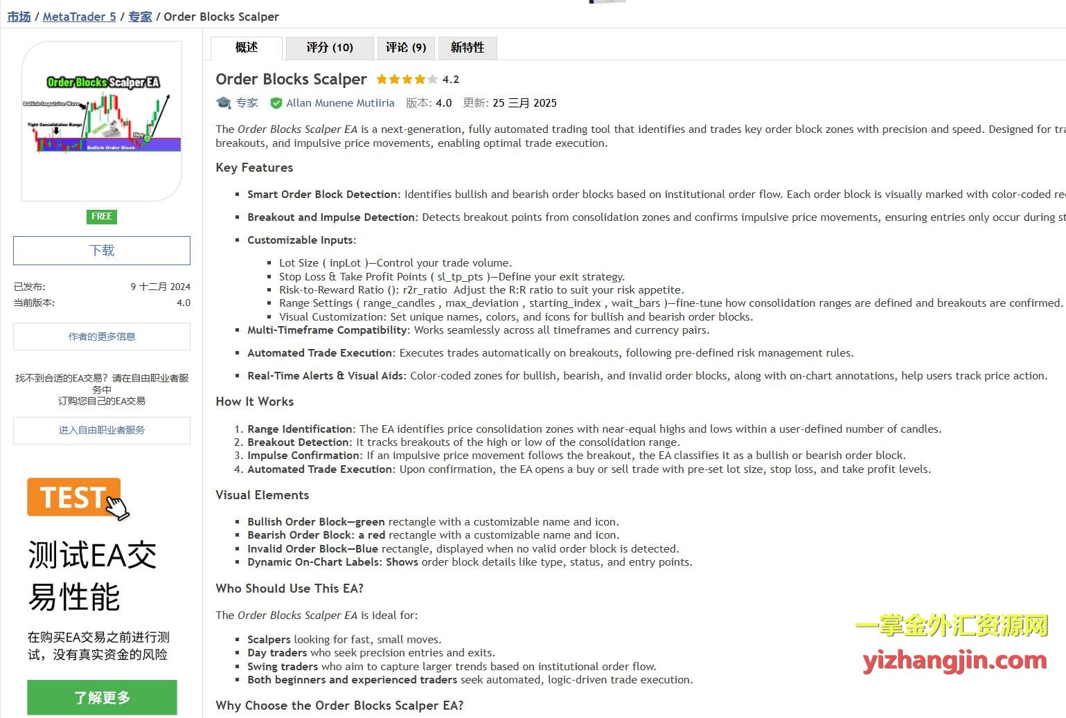 Order Blocks Scalper EA是一款基于市场结构分析与机构订单流识别的全自动交易工具,其策略核心在于智能检测价格盘整区间并结合突破信号执行开平仓。该EA同时持有多空单以起到对冲作用,但从实际测试结果来看,仅AUDUSD品种的资金曲线表现尚可,其他品种表现则基本震荡和下行为主。MQL5平台上的免费EA,通常属于半成品性质,因此不做进一步深入探讨。