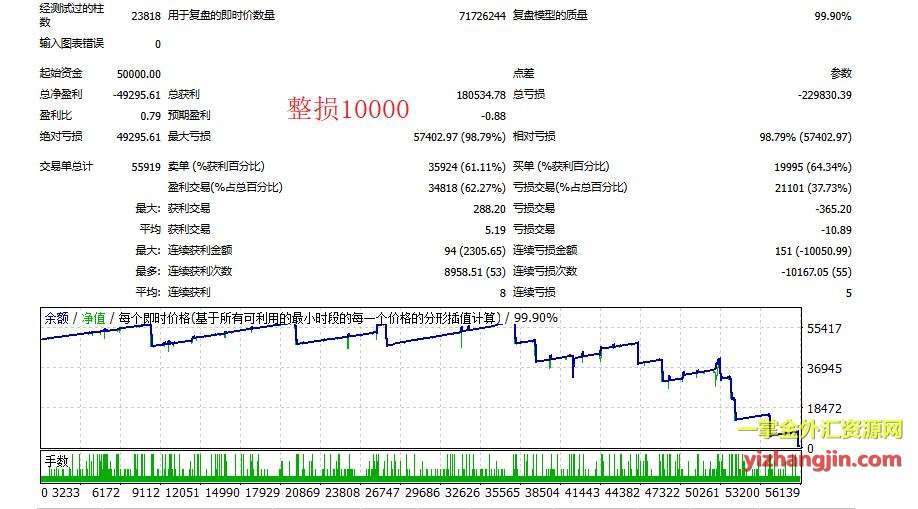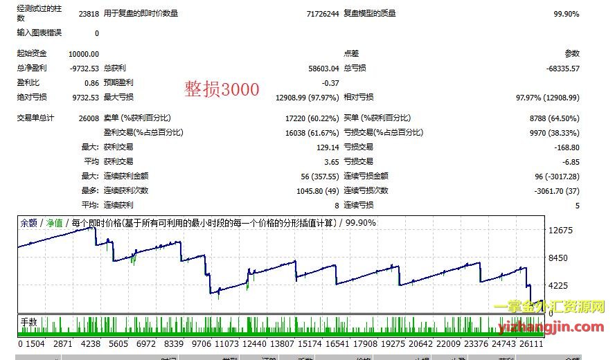 新黄金刷单EA是一款客户考虑破解限制的刷单类马丁策略,自带整体止损。由于其回测不受限制,客户在破解前查看了近期不同止损参数下的严格测试报告,最终打消了破限制的念头。该策略交易量极大,月订单数可达数万笔,属于完全无脑式的马丁类型。 客户之所以被吸引,是因为EA宣传中的资金曲线表现极其亮眼。但营销通常只展示光鲜的一面,很少基于严格条件进行测试,甚至使用的数据精度不足、复盘模型也未必采用即时价格。如果客户愿意花上十块八块购买tick数据认真测试,很快就能发现问题所在。