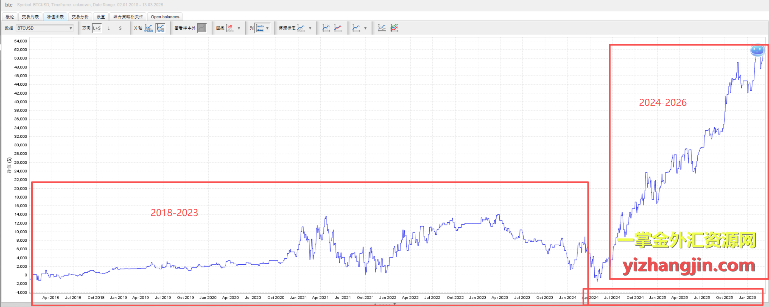 Kings该策略主推黄金和欧元。但黄金不管从哪里开始回测仅运行半年左右便中断,疑似存在Bug;欧元兑美元虽回测了2010至2026年的数据,整体表现波动较大、走势坎坷。综合来看,不建议采用。
