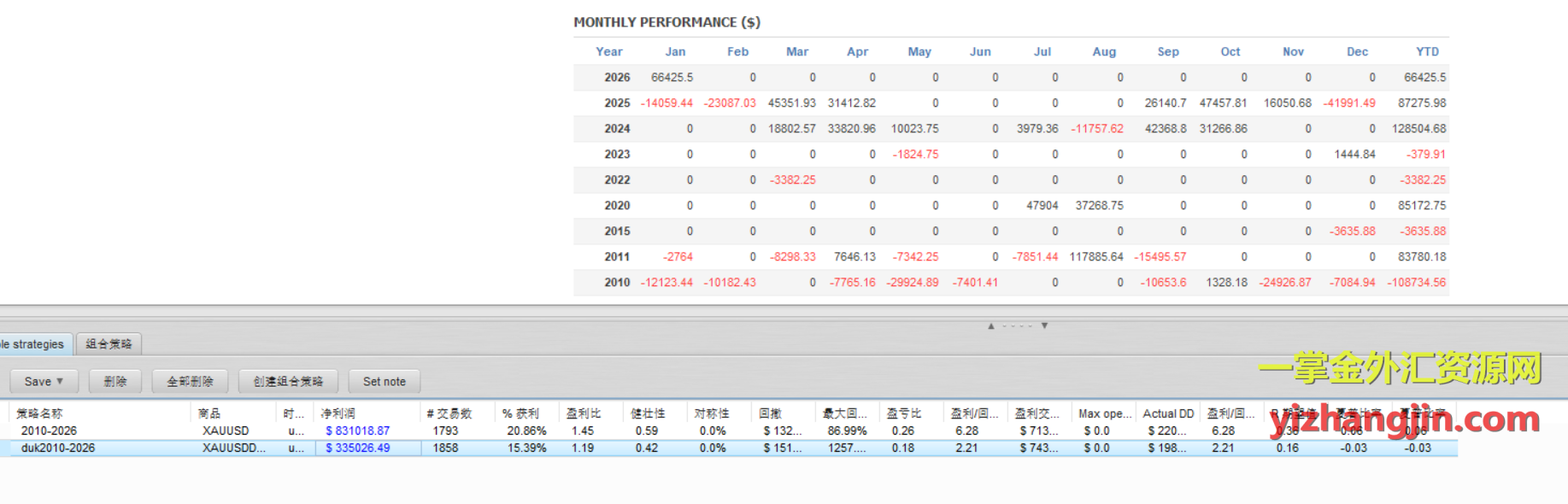 万倍 EA 是另一位客户传来的MT5策略,做了从2010到2026年的自带数据与导入数据报告。但在导入QA后发现,很多月份连续没有单子,不少年份一年只有一两个月有交易。造成这种情况的原因较多,由于没有源码,只能视为异常。建议先查明原因再考虑使用;如果原因无法弄清,只要存在异常就应当删除。