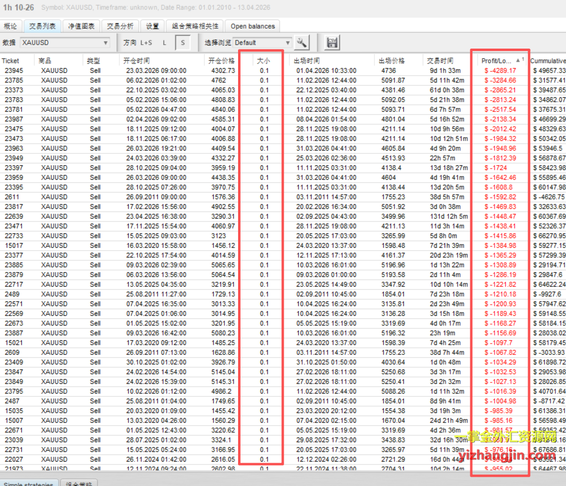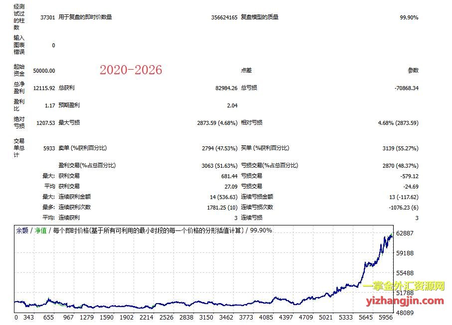 客户发来一款名为ST Master EA的策略,属于波段趋势类,盈亏比1:1,止盈止损空间都较大,接近2000微点。最近两年表现不错,历史走势以震荡走平为主。近一年来出现了不少“近期表现良好、历史表现一般”的策略,这主要是因为黄金近两年的行情较为独立,确实难以适配更久远的历史走势。因此,参考周期的选择标准因人而异——只要策略没有造假、套路或主动拟合,基本可以确认其有效性,适当缩短参考周期也是可以接受的。就这款EA而言,参考2020年至2026年的资金曲线,也算是通过了初步检验。不过最终放弃的原因在于止损过大:除了跳空导致的止损可达上万微点外,策略中重要的参数被隐藏、无法调整,超出了我这边的筛选标准,因此决定放弃。