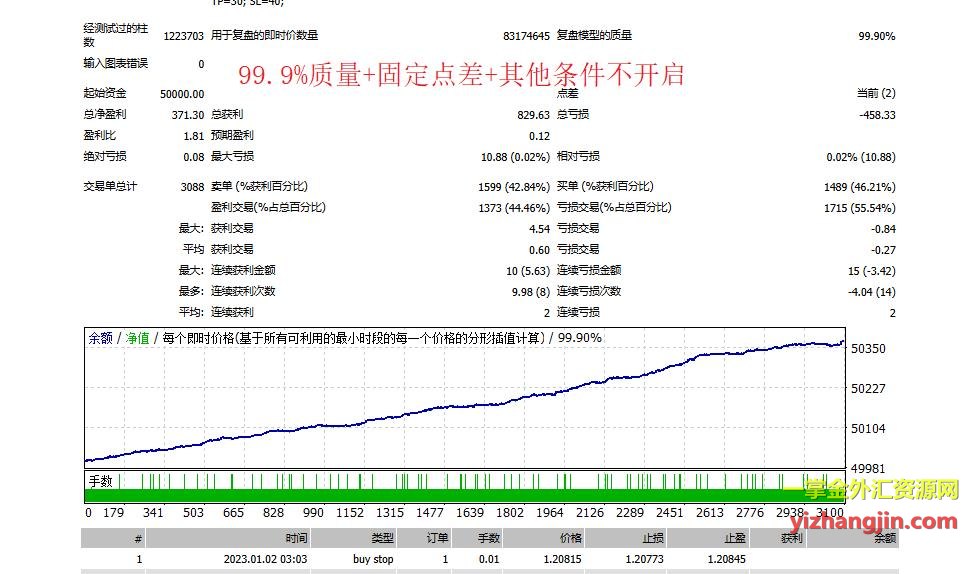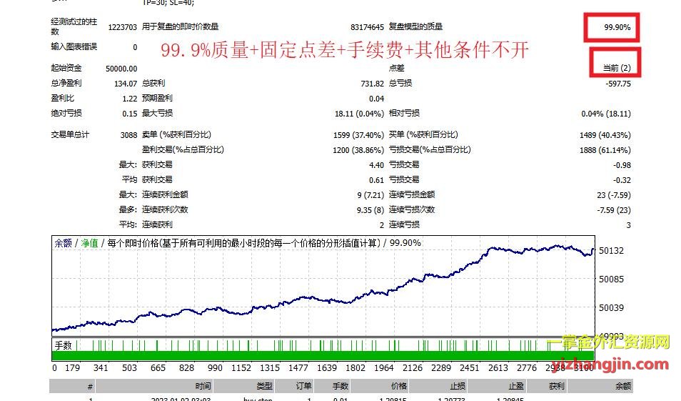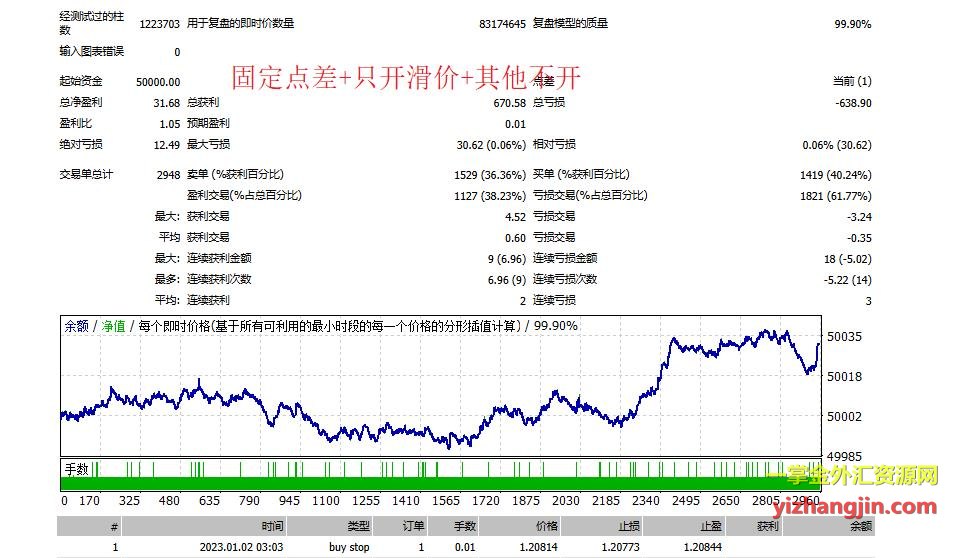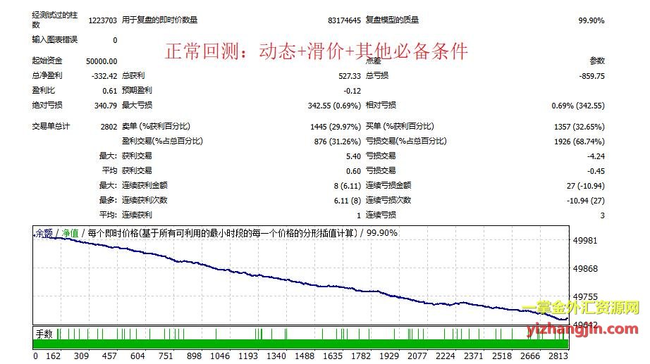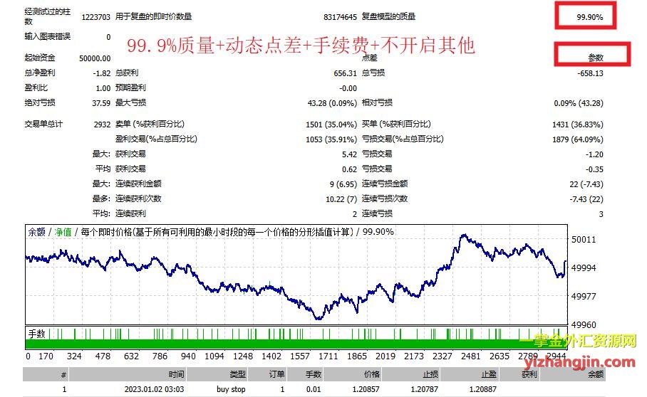 由于客户那边的回测结果与我这边差异很大,我特意以99.9%数据质量+即时价模型为基准,做了多个不同条件下的对比测试。结果清晰显示:滑点、动态点差、手续费等因素对回测结果影响巨大,可以作为典型案例参考。回测本就没有统一标准,不同平台、不同账户类型、不同策略所适配的条件各不相同。因此,最佳的回测标准,就是尽可能贴近你自己实际使用的平台交易条件,这样才能最大限度提高参考价值。