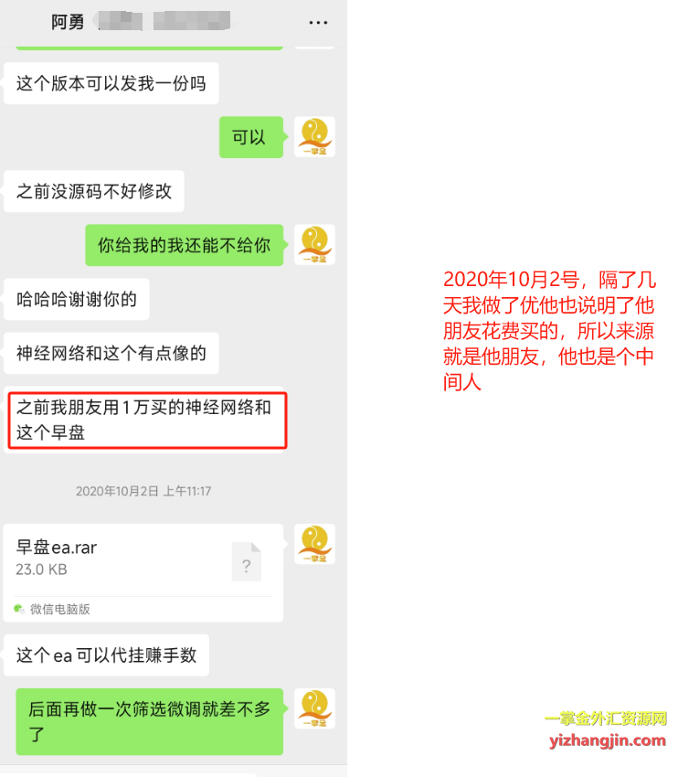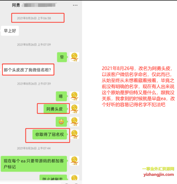备注:该ea最早收到是阿勇这个人提供给我,应该是2020年,最初名字就是早盘ea,相当于没有名字,所以改名为直盘头皮发的测评2021年直接改成阿勇头皮,以这个客户微信名命名,至于有些人质疑是罗伯特,可能同源,但绝对不是一样,就算一样又如何,我收到ea还必须知道他的祖宗叫什么?(详细聊天记录看下面截图)